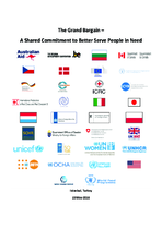 The Grand Bargain commits donors and aid organizations to providing 25 per cent of global humanitarian funding to local and national responders by 2020, along with more un-earmarked money, and increased multi-year funding to ensure greater predictability and continuity in humanitarian response, among other commitments. Further information can be found in the official website of the Grand Bargain, https://interagencystandingcommittee.org/grand-bargain-hosted-iasc/.